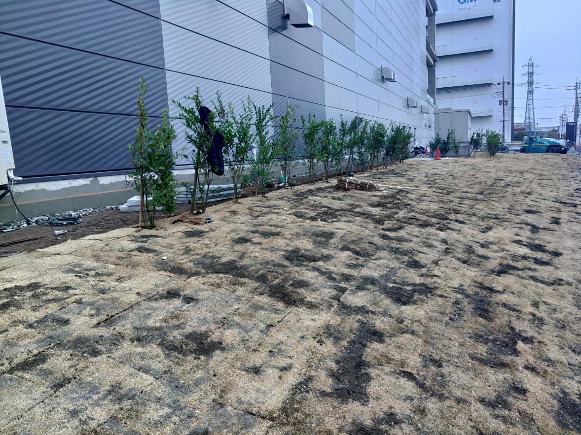 埼玉県草加市で芝張り・ネズミモチの新規植栽を行いました。