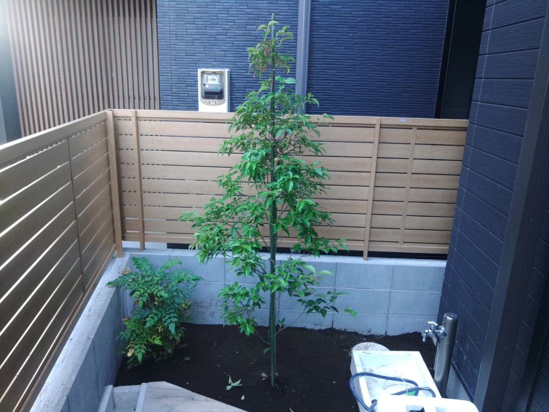 埼玉県さいたま市で常緑ヤマボウシ、ヒイラギナンテンの植栽を行いました。