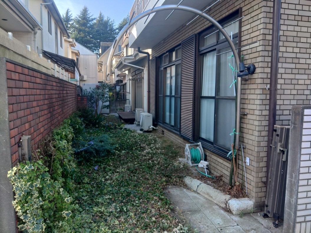 埼玉県川越市でヤマハギ、サザンカ、ツバキ、モミジ、ハナカイドウ、ヘデラ、ハツユキカズラ、ハイビャクシン等の剪定を行いました。