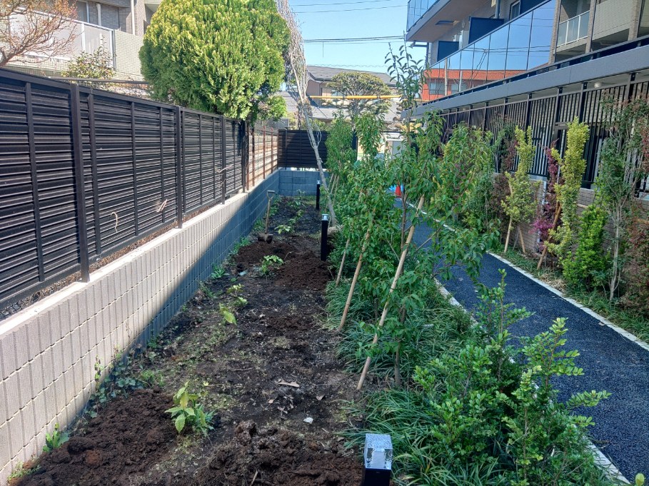 神奈川県川崎市で枯替え工事と越境樹木の剪定を行いました。
