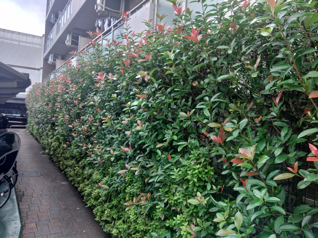 東京都渋谷区でセイヨウベニカナメの剪定、ツツジの刈込を行いました。