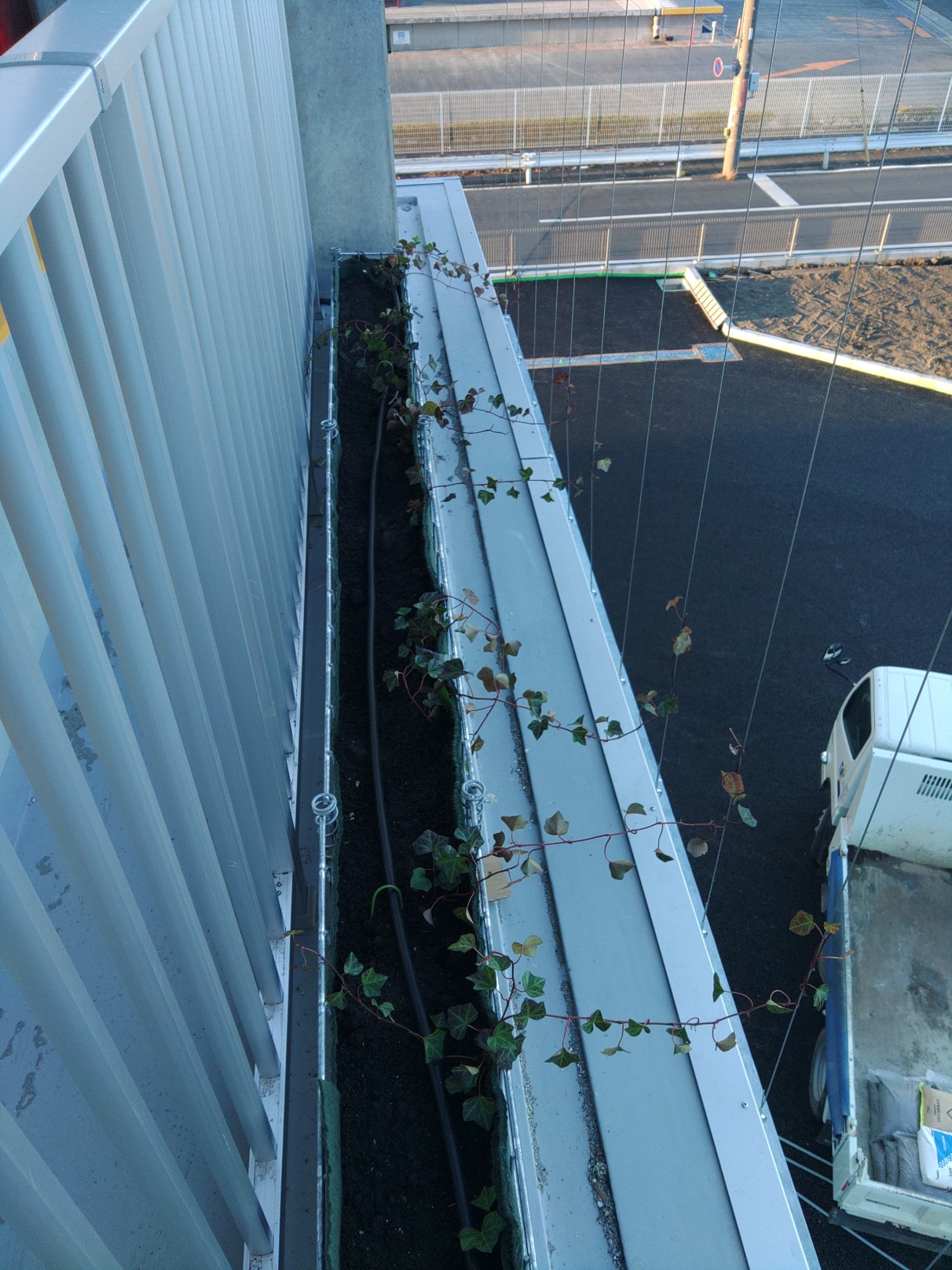 埼玉県草加市の壁面緑化工事でヘデラヘリックスの植栽を行いました。