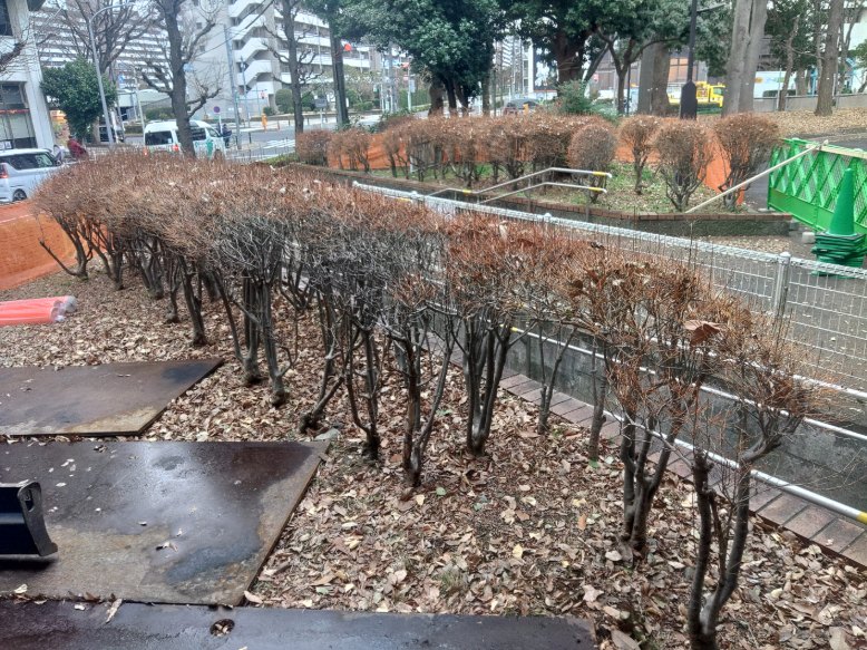 東京都杉並区でモッコク、ハナミズキ、レッドロビン、アジサイ、ガクアジサイ、コムラサキ、アセビ、サツキ、ツツジ等の剪定及び草刈りを行いました。